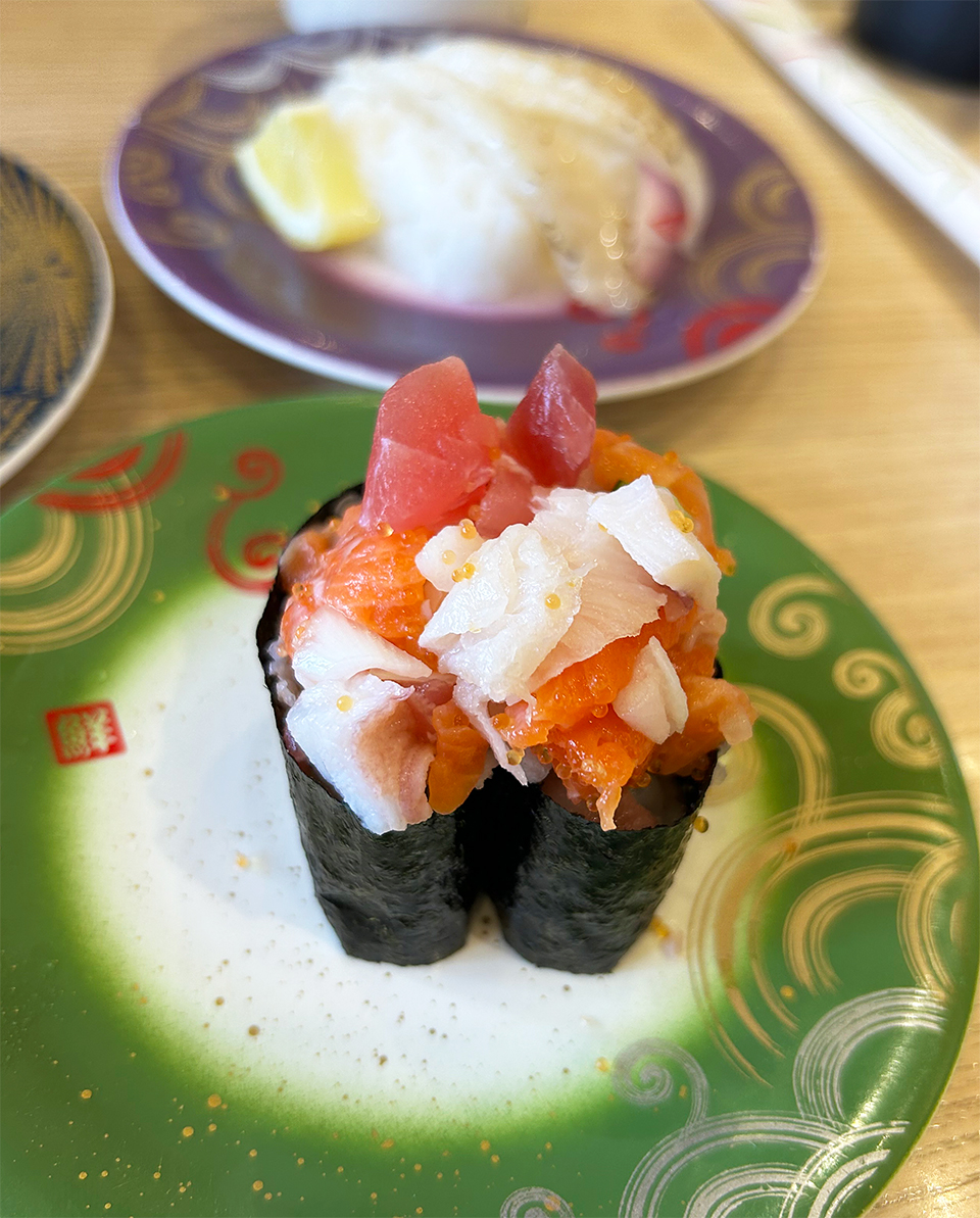 回転寿司トリトン栄町店まではタクシーで10分もかからず、料金は910円。これがバスの場合、丘珠空港→地下鉄栄町駅は料金350円なので二人で700円。スーツケースをゴロゴロ引き摺ってトリトンを往復したくはないので、地下鉄栄町駅でコインロッカーを利用すると500円。あわせて1,200円になるので、それならタクシーの方が楽チンで安いですもんね。